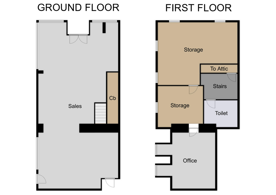 The shop is rectangular in shape and has a sizeable retail sales area, with stores, an office and toilet facilities on the first floor.