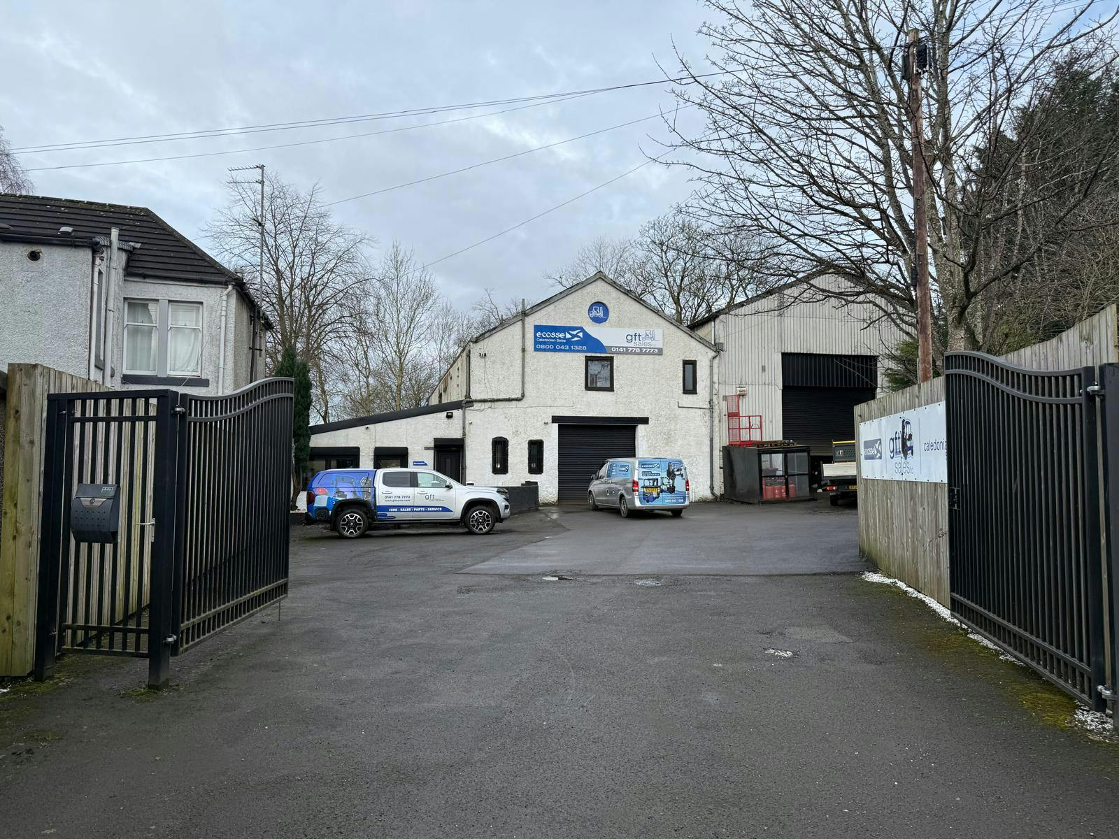 Access to the secure tarmacked shared yard is via a private road directly from Smithycroft Road.