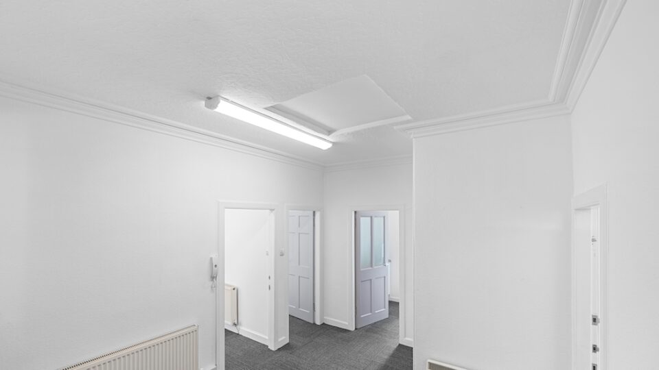 • Cellular layout with large rooms and high ceilings