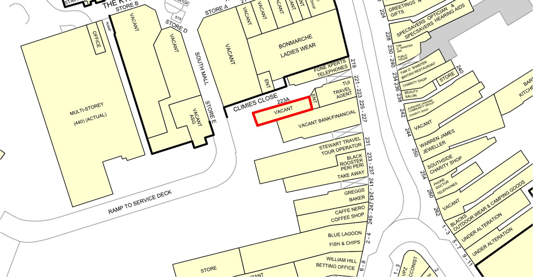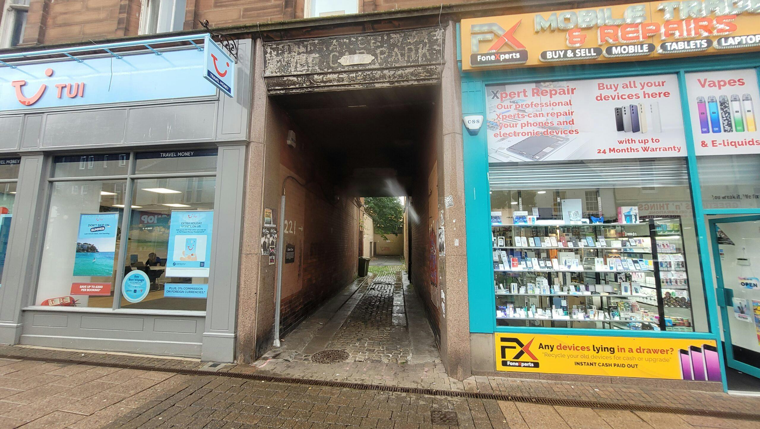 The property is located to the rear of 223 High Street (currently occupied by TUI) and access via Climie‚s Close, a cobbled walkway leading to a large private car park. The locality is predominantly commercial in its nature with some residential property on the upper floors of tenement style properties. The property lies to the south of the former Kyle Centre, which will soon be redeveloped. Vehicle access is available to the front of the property through Climie‚s Close off High Street.