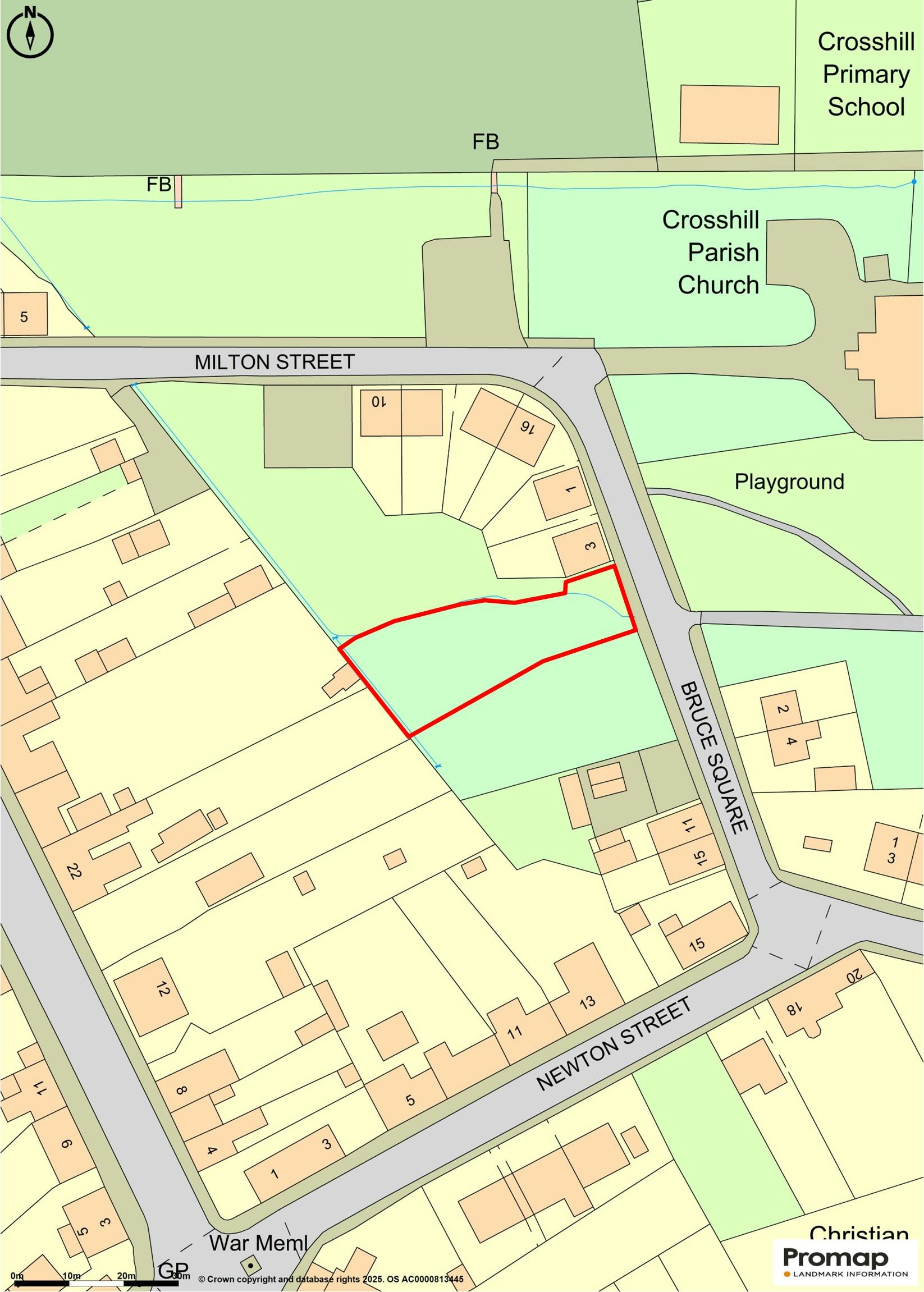 The plot comprises of an irregular shaped area of ground having roadside frontage on to Bruce Square, with a stream to its northern boundary and open ground to the south. The site is generally level, and the site extends to 0.07 hectare (0.17 acre), or thereby. Mains water, electricity and drainage are advised to be under the adjoining road. Planning permission is in place to develop a detached bungalow on the plot, extending to a gross internal area of around 117sqm (1259sqft). The proposed plans show the following accommodation: Entrance hallway, Lounge, Dining Area, Kitchen, a Sunroom, Three Bedrooms (Master with en suite) and a Bathroom. Offers over £75,000 are invited for the plot. Each party to be responsible for their own legal costs incurred.