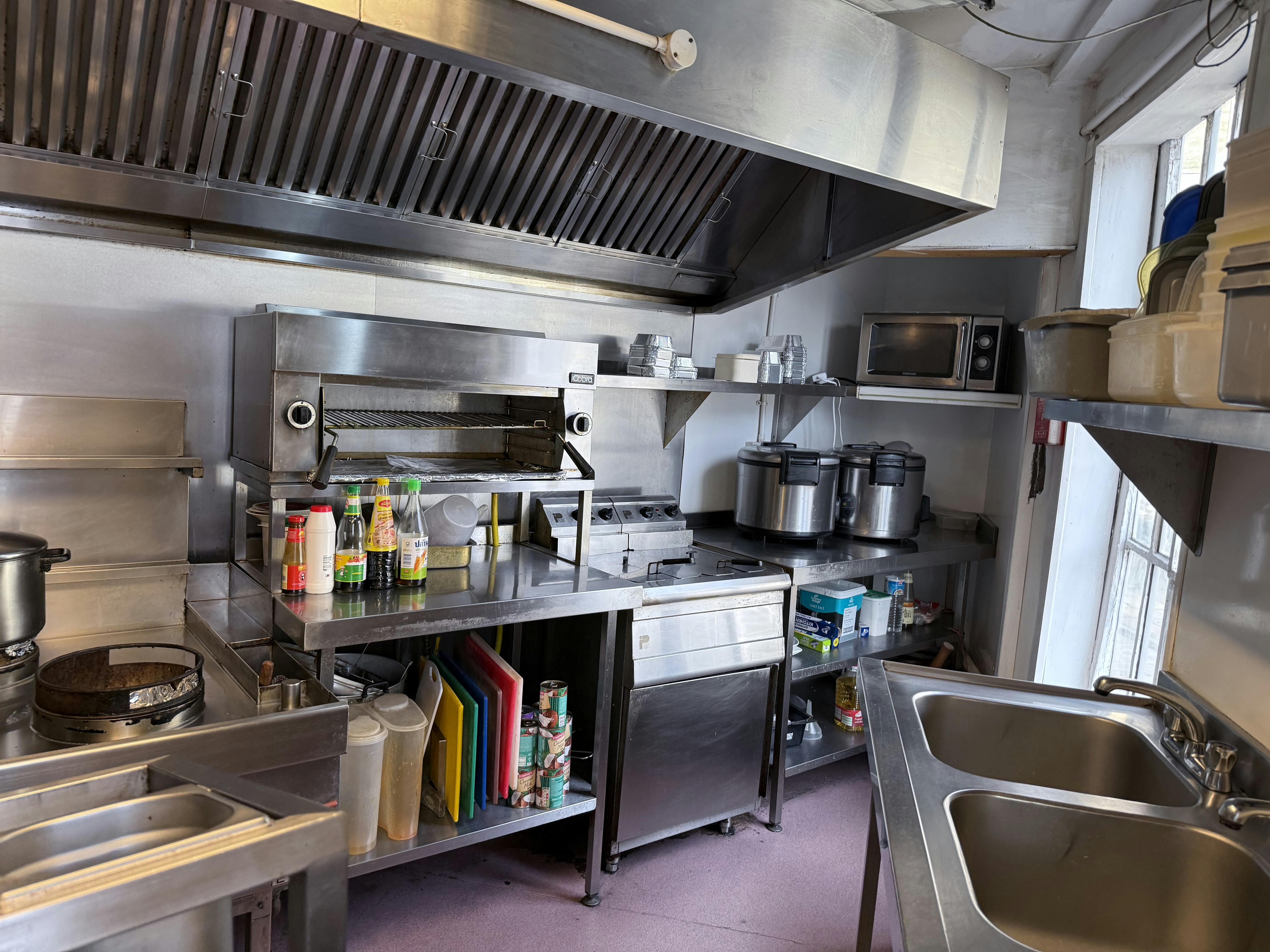 Most recently used as a hot food takeaway, this compact and highly versatile premises presents an ideal opportunity for a range of food uses, including a sandwich bar or takeaway. Configured over three floors, the ground floor is accessed directly from Branthwaite Brow and provides a serving and waiting area. Stairs from the rear lead to the first floor, which comprises a fully fitted catering kitchen and preparation areas. A further staircase leads to the second floor, currently used for ancillary storage and accommodating WC facilities.