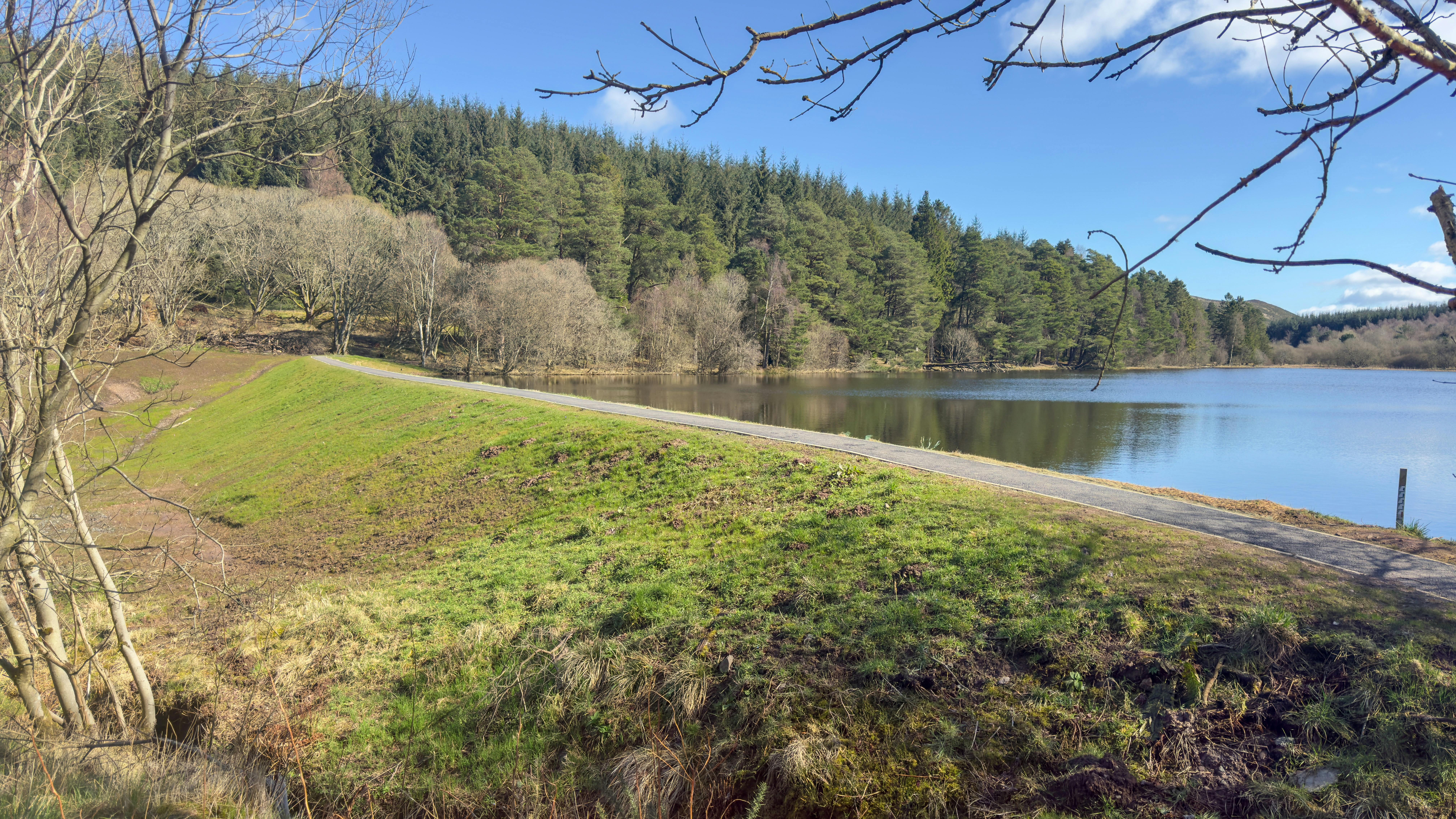 An extremely attractive, peaceful and tranquil SSSI Loch with woodlands and meandering paths by the Sidlaws on the Perthshire Angus Border