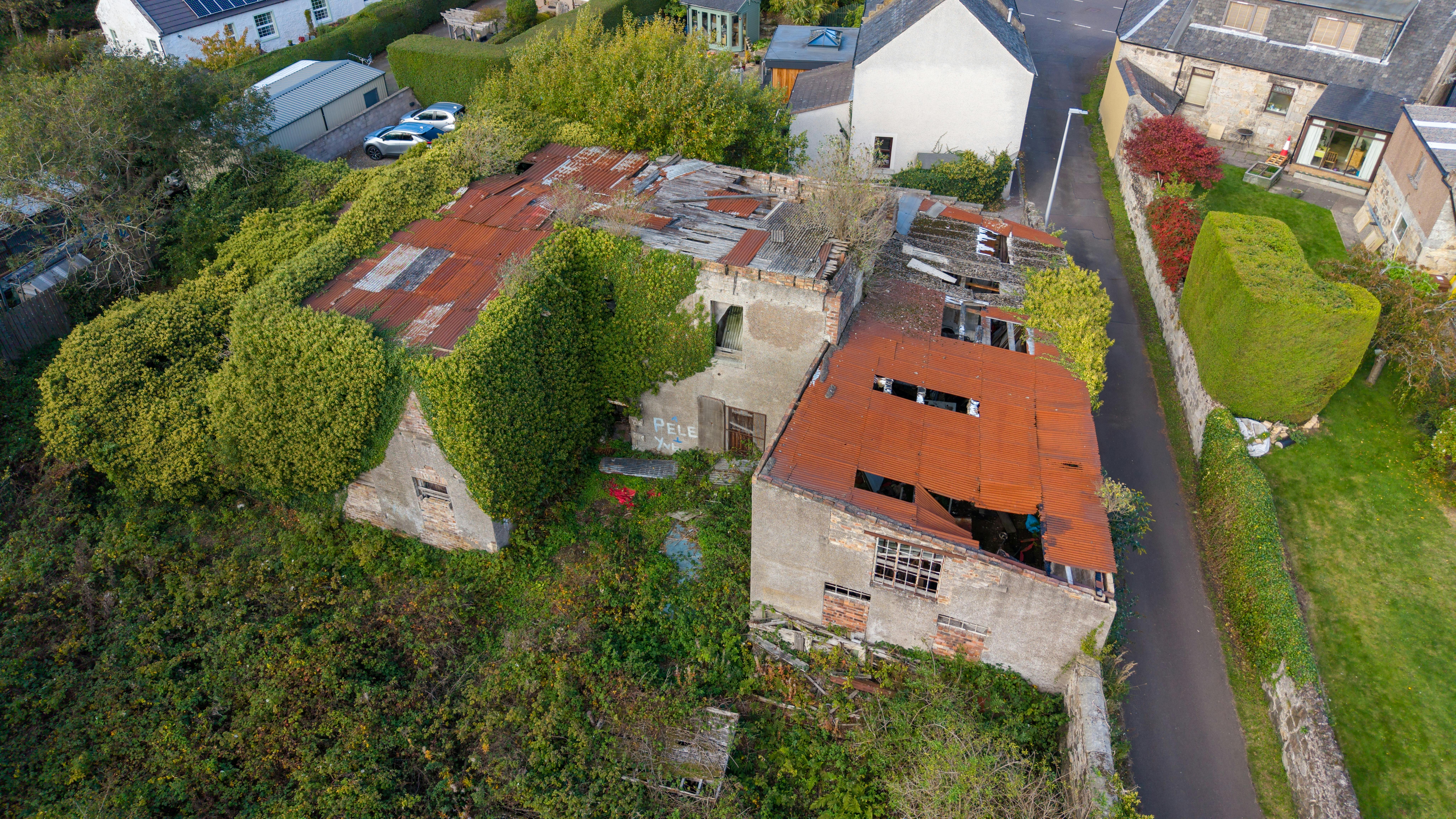 The property comprises dilapidated buildings and an area of land, which extends to approximately 0.13 hectares (0.31 acres) in total. We understand that the subject is the site of a former dwelling and farm steading historically used for agricultural purposes. The buildings comprise a two-storey former dwelling and garage. The property appears to be of stone/brick construction, rendered externally. The roof is in a dilapidated condition. Whilst the site was historically serviced until the mid 1990‚s we are not aware of any current connections. Interested parties should make their own enquiries with reference to reinstating service connections. The buildings are now in a poor state of repair and an asbestos survey is available from the selling agents. We have measured the outline of the buildings on Promap and this extends to approximately 3,270 sq.ft at ground level. The eastern boundary is part stone wall. A low stone wall forms the western boundary of the site but is currently largely obscured by vegetation. We understand the garage was last used in the mid 1990‚s as a garage for commercial purposes. We note there is an entry on the Scottish Assessors Association website with reference 328086400. From review of the Local Development Plan, the south section of the site is designated as Protected Open Space. No site surveys or technical assessments have been provided. Purchasers enquiring on planning prospects should seek independent professional advice.
