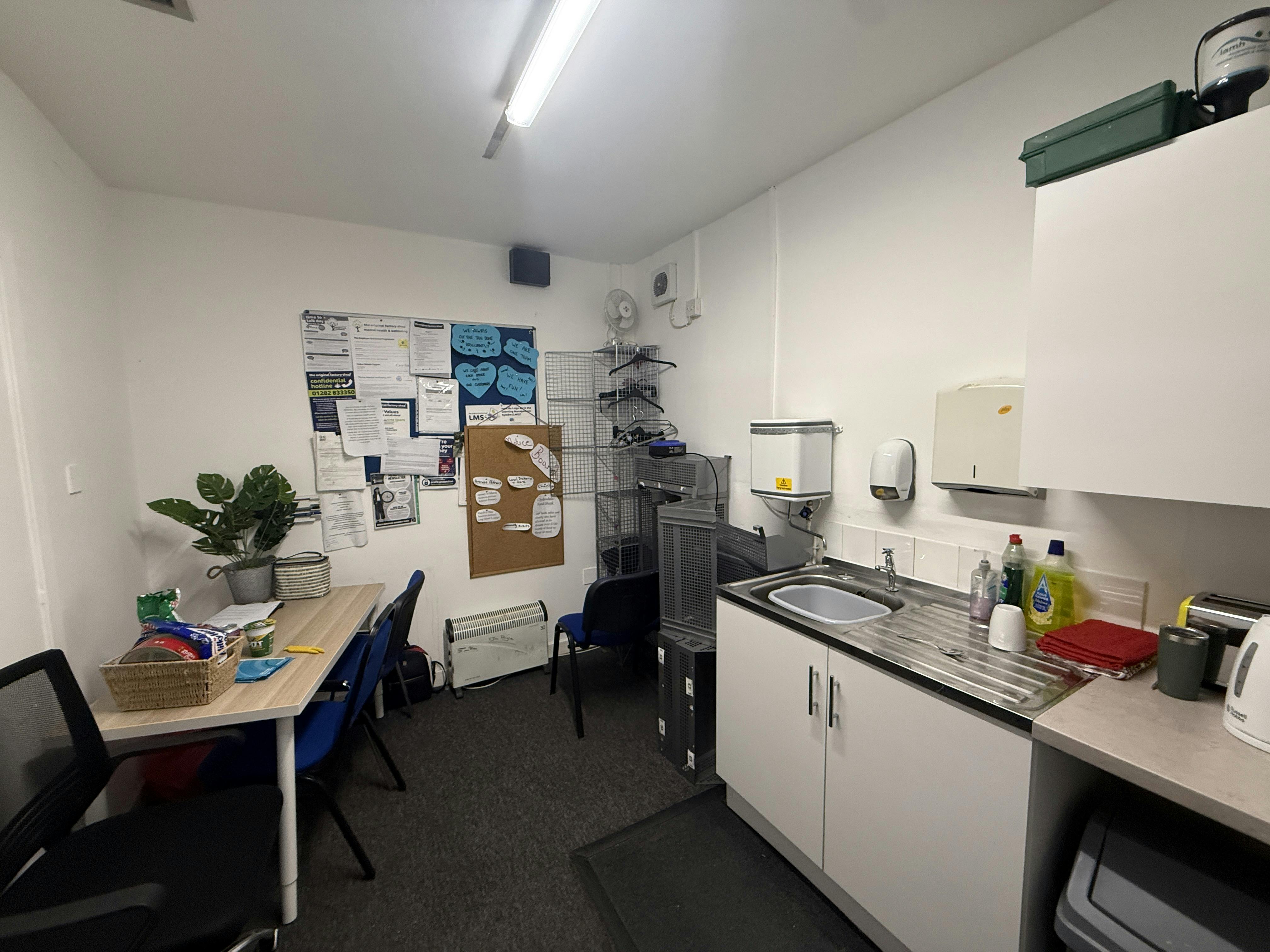 The unit is of steel portal frame construction with brick and metal sheet elevations, and the interior is finished in a clean, functional style with a combination of gas central heating and fan heating to the main areas.