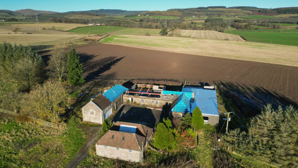 This distinctive detached country home was originally created in 1973 from the sympathetic conversion of a traditional U-shaped stone steading with slate roofs. Acquired in 2014, the property gained planning consent in 2019, with redevelopment works commencing in 2022.