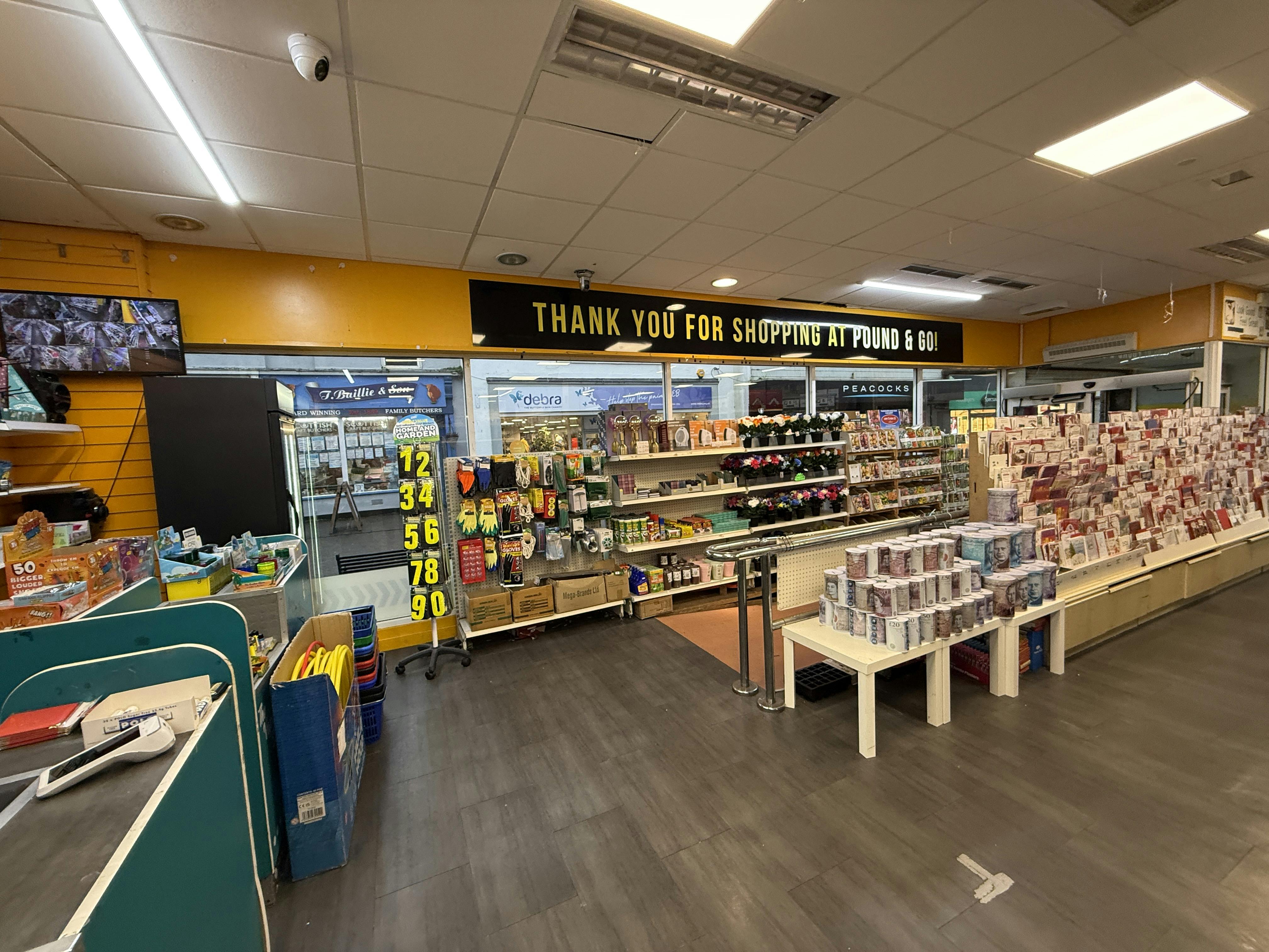 - Next to Greggs, Farmfoods, Subway and Peacocks