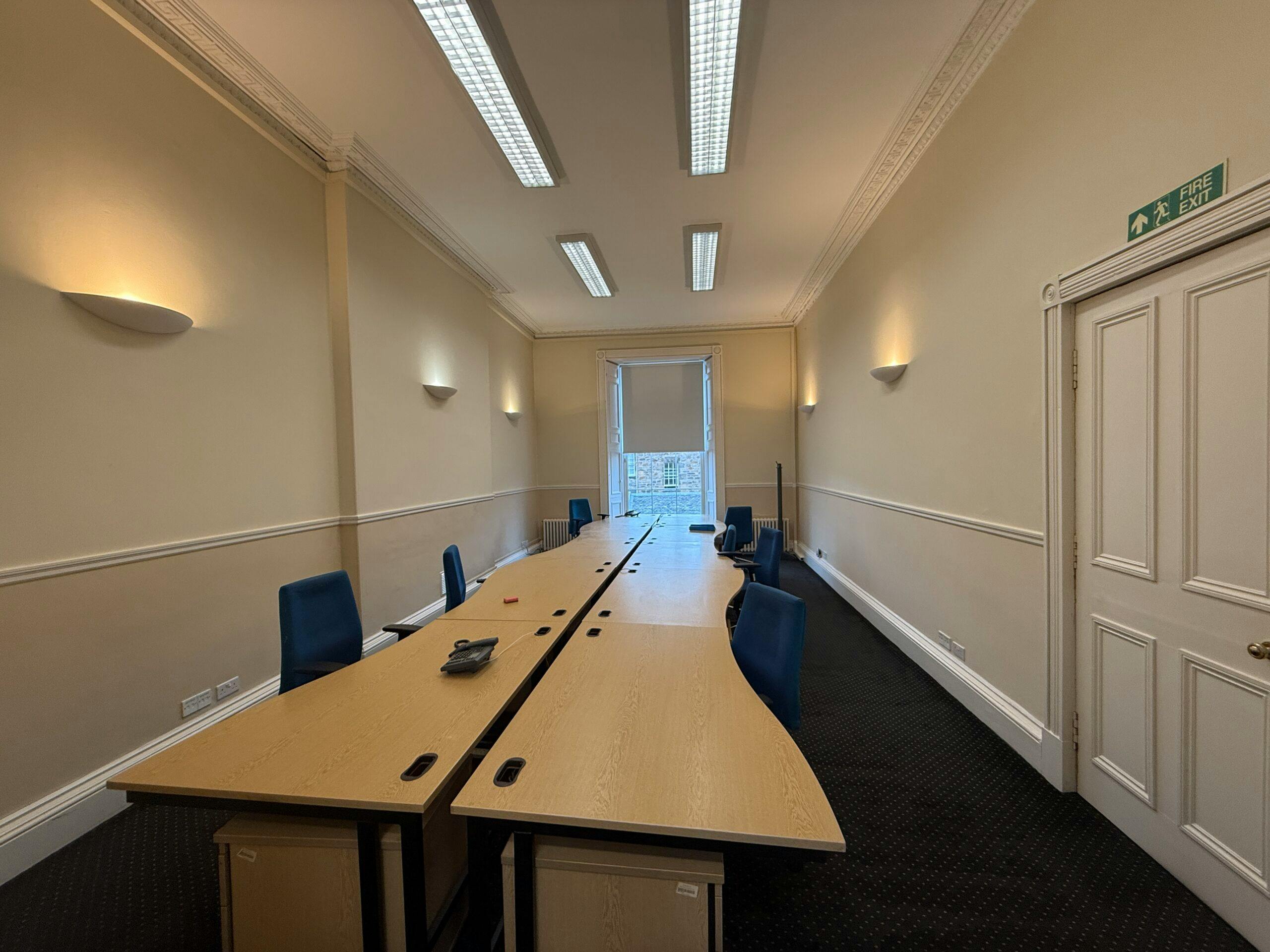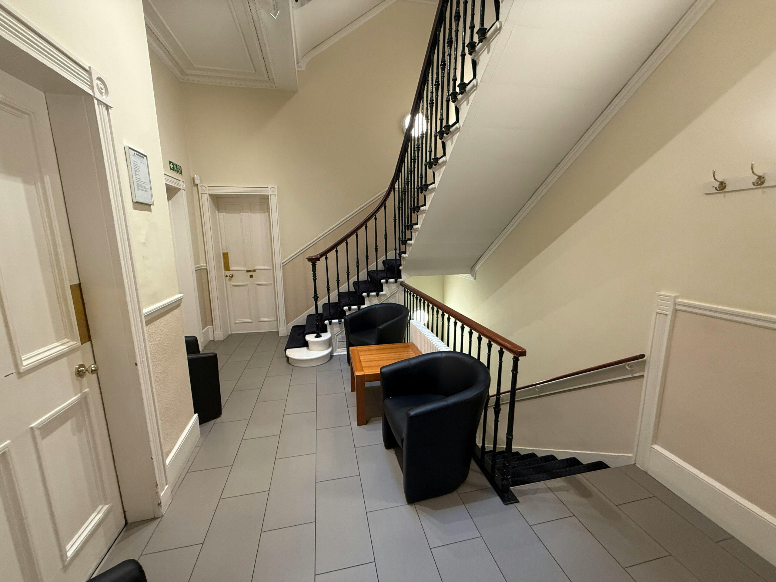 Internally, main door access on the ground floor provides passage to a traditional entrance vestibule, with a large open plan office, smaller office and meeting/conference room located off the entrance hall. Stairs from here lead downwards towards the lower ground floor level that offers further open plan office space, server room and staff welfare facilities, whilst also giving access directly to the rear courtyard.