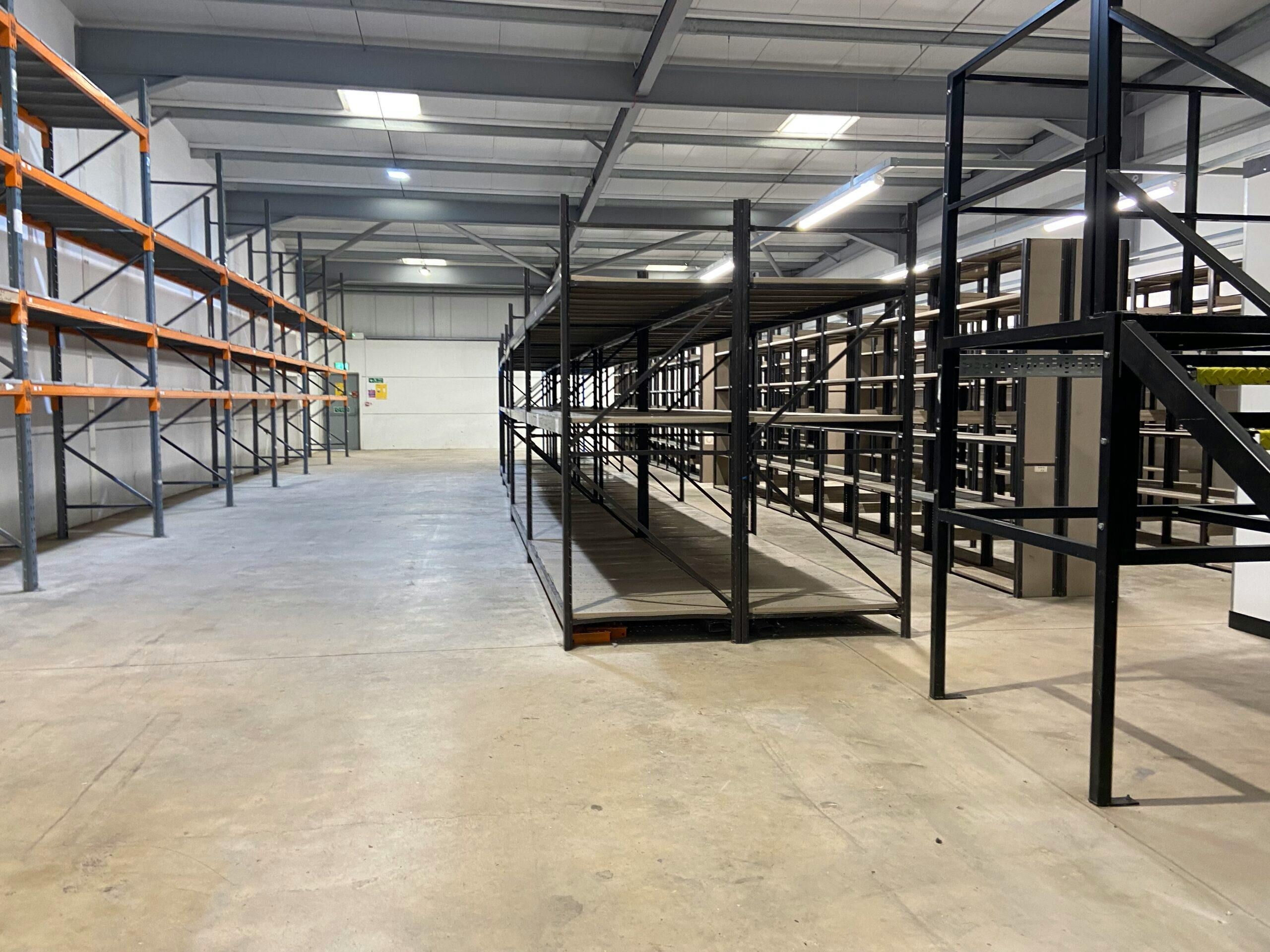 An extremely rare opportunity to rent a high end modern warehouse/trade counter unit on a well established trading estate. The unit is offered in excellent ‘ready to go’ condition with customer and industrial concertina folding doors to the front. The customer entrance leads through to a trade counter area with open office space and private office area to the rear. There is access from the trade area to the warehouse space. The warehouse offers large open place space with kitchenette area and male and female wc facilities. Stairs from the warehouse lead up to further mezzanine space (which can also be accessed via th trade area). The property comes fully fitted with up to date CCTV equipment, door heaters on entrance, and safety lighting throughout. There is currently racking throughout the property which could be left if required. Ample parking area to the front.