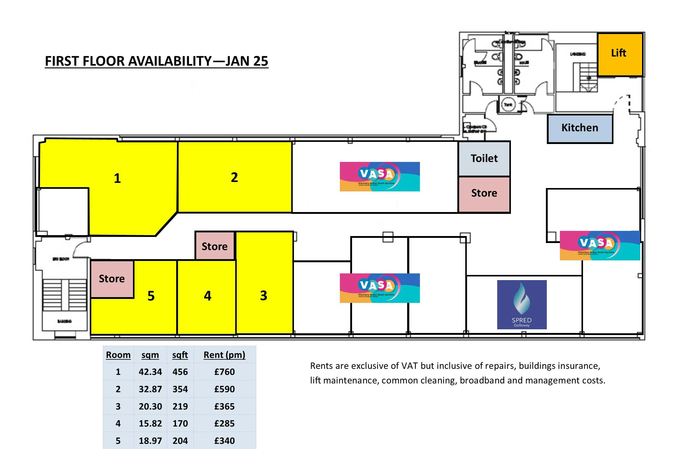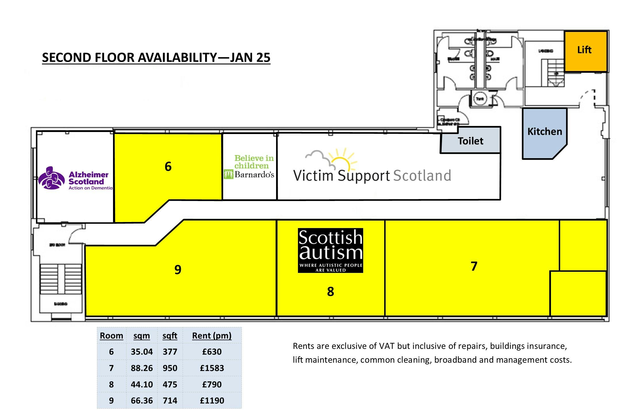 Boswell House offers refurbished and competitively priced, ‚òall inclusive‚ office accommodation in Ayr Town Centre, on the first, second and third floors of the building. Benefits include: ∑ Central location close to public transport and shops ∑ Secure door entry access ∑ Passenger lift access to all floors ∑ Attractive communal areas and kitchens ∑ A good mix of existing occupiers mainly from the public and charitable sectors ∑ Refurbished offices with LED lighting and double glazing ∑ Flexibility in size with private rooms from 170sqft ∑ Large suites available up to 4500sqft ∑ Offices can be sub-divided to suit occupier needs ∑ Potential for other uses such as beauty and wellbeing ∑ Flexible, one-year contracts available ∑ Immediate entry with low initial cost ∑ 100% rates relief on most spaces ∑ High speed broadband connection ∑ Rents inclusive of electricity cost, maintenance, buildings insurance and broadband ∑ Offices available from £250 per month, other prices on application The availability is as follows: Floor Room Size (sqm) Size (sqft) First 1 42.34 456 First 2 32.87 354 First 3 20.30 219 First 4 15.82 170 First 5 18.97 204 Second 6 35.04 377 Second 7 88.26 950 Second 8 44.10 475 Second 9 66.36 714 Third 10 418.06 4,500 EPC available upon request. Each party to be responsible for their own legal costs incurred.