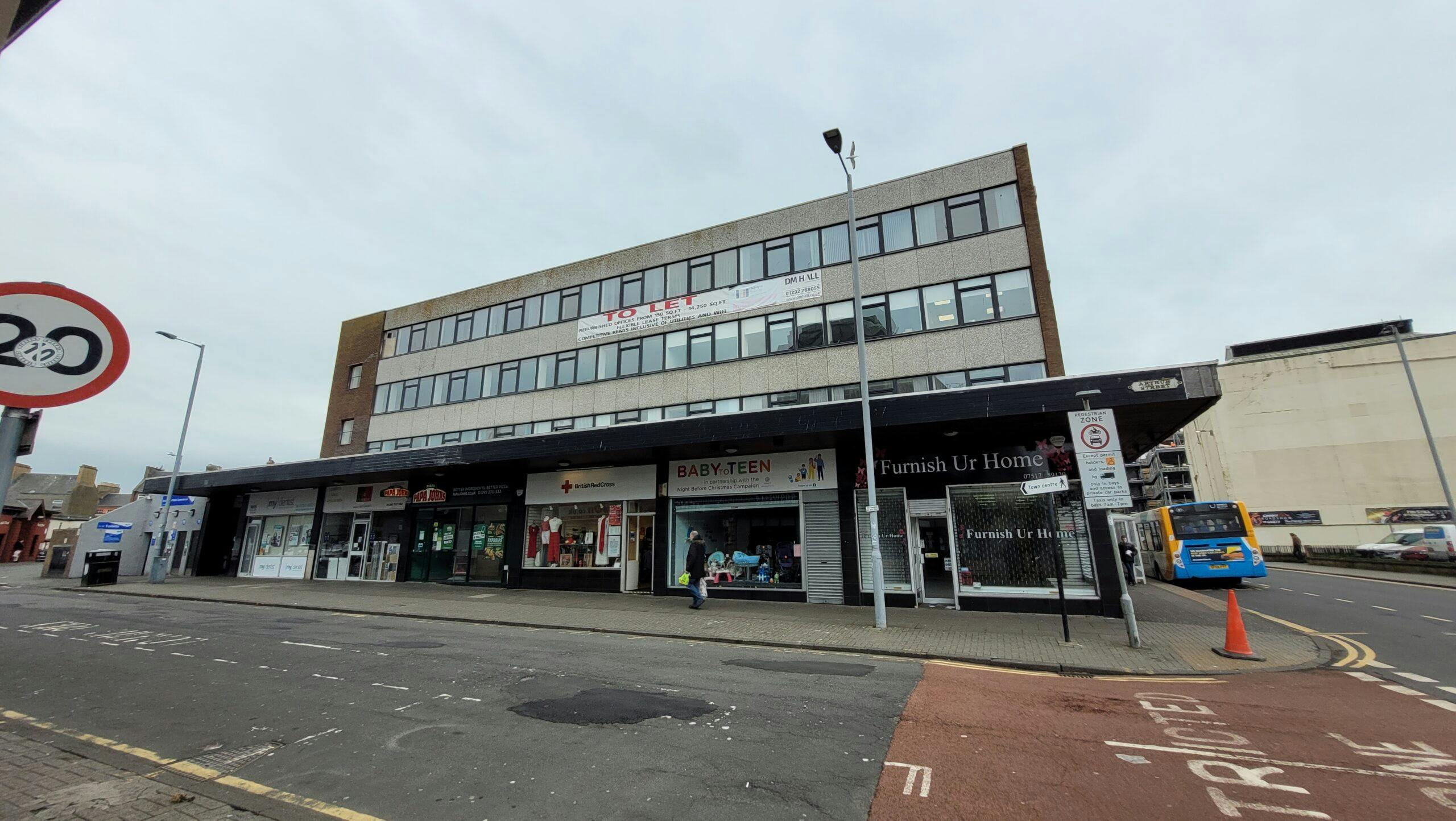 - Central position in Ayr Town Centre Close to public transport links and car parking Refurbished offices with lift access Rooms and suites available from 170sqft to 4500sqft Potential for non-office uses such as beauty and wellbeing 100% rates relief avail