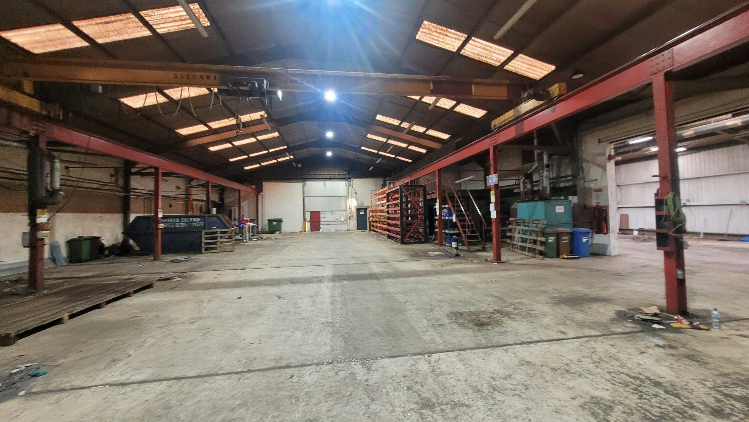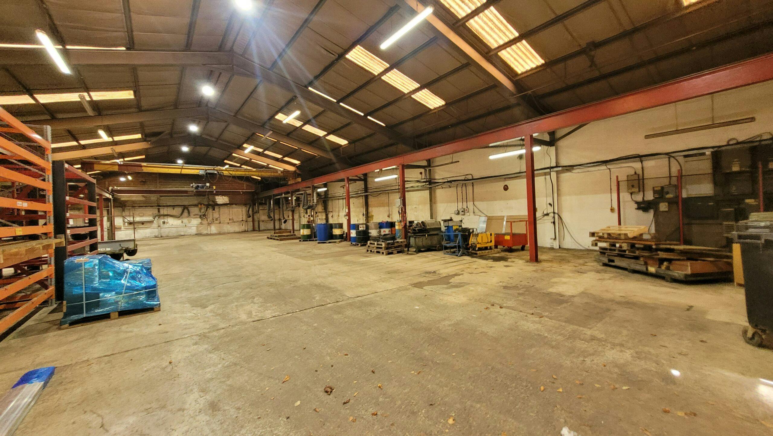 Unit 9 is a detached, steel portal framed warehouse with brick outer walls and having a vehicle entry door to its frontage. There is an interconnected, steel portal frame side extension, with a single storey office projection to the front elevation. The building has ancillary accommodation over two floors within the main warehouse, including toilets, with a further two storey section in the extension, containing offices. The property has an internal eaves height of 4m (13‚1‚‚) and has two cranes on rollers accommodating loads of 2 tonnes and 5 tonnes. Lighting is via energy efficient LEDs. The warehouse has a secure, private yard area finished in concrete and hardstanding. There is detached steel framed and corrugated shed within the rear grounds. An indicative site plan is attached. The property extends to a gross internal floor area of 1,098 sqm (11,819 sqft), or thereby. The rateable value is £32,200 and the rates payable for the financial year 2024/2025, are in the region of £16,000. The units is available at a rent of £45,000 per annum on a new lease for a minimum five year term, on a full repairing and insuring basis. EPC available upon request. Each party to be responsible for their own legal costs incurred.