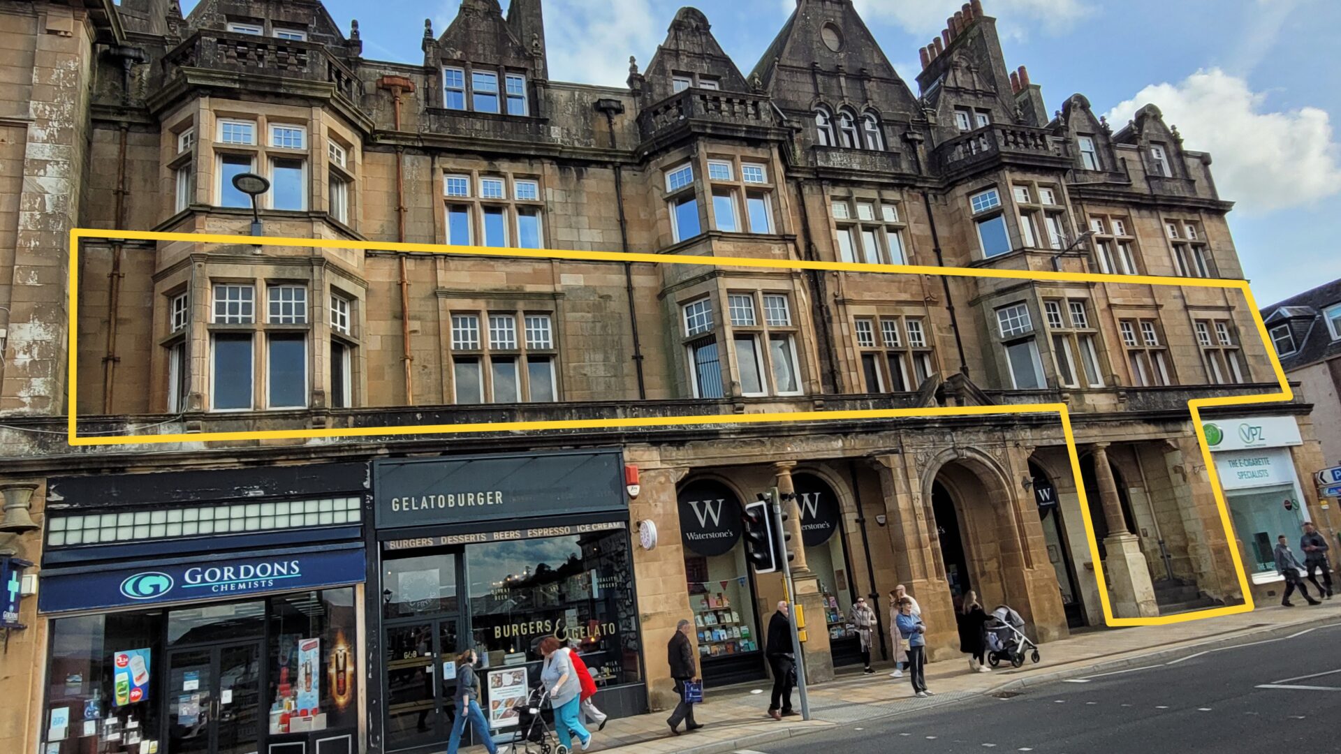 Nearby occupiers include Waterstones, Gelatoburger, Gordons’ Chemists and Palace Hotel.